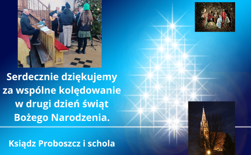 W drugi dzień świąt Bożego Narodzenia tradycyjnie kolędujemy. W kościele parafialnym na godzinę 10.00 schola wspólnie z parafianami zaśpiewała najpiękniejsze polskie kolędy.
