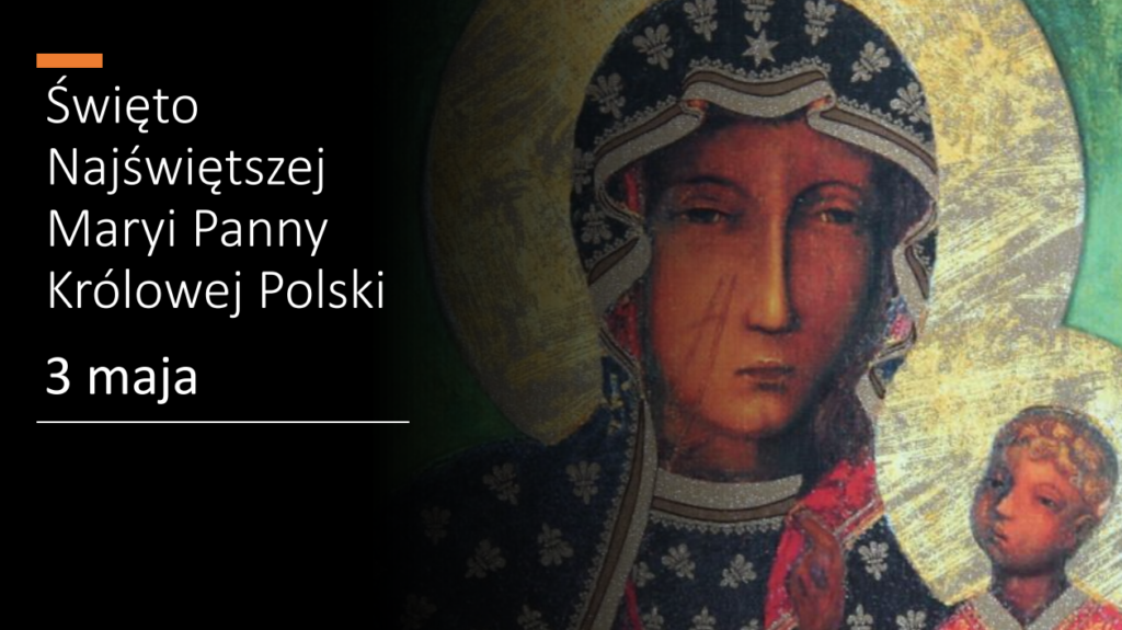 3 maja Kościół katolicki w Polsce obchodzi uroczystość Najświętszej Maryi Panny Królowej Polski. Nawiązuje ona do ważnych wydarzeń z historii Polski: obrony Jasnej Góry przed Szwedami w 1655 r., ślubów króla Jana Kazimierza – powierzenia królestwa opiece Matki Bożej, a także do uchwalenia Konstytucji 3 Maja.