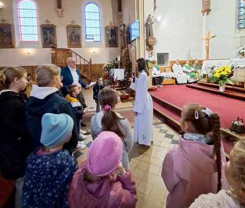Dziś 22 października 2023 r. wraz z klasami I – III gościliśmy w naszym kościele św. Jadwigę Śląską – patronkę Dolnego Śląska. Dzieci poznały postać Jadwigi oraz jej działalność misyjną w czasie Średniowiecza.