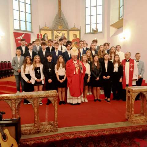 Bierzmowanie to sakrament dojrzałości chrześcijańskiej. W dniu 1 czerwca 2022 roku uczniowie klas VIIIa, VIIIb i VIIIc przyjęli z rąk ks bpa Jacka Kicińskiego bierzmowanie.